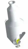 Whichever the form of the crystallizer, to achieve an effective process control it is important to control the retention time and the crystal mass, to obtain the optimum conditions in terms of crystal specific surface and the fastest possible growth. This is achieved by a separation – to put it simply – of the crystals from the liquid mass, in order to manage the two flows in a different way. The practical way is to perform a gravity settling to be able to extract (and possibly recycle separately) the (almost) clear liquid, while managing the mass flow around the crystallizer to obtain a precise slurry density elsewhere. A typical example is the DTB (Draft Tube and Baffle) crystallizer, an idea of Richard Chisum Bennett (a Swenson engineer and later President of Swenson) at the end of the 1950s. The DTB crystallizer (see images) has an internal circulator, typically an axial flow mixer – yellow – pushing upwards in a draft tube while outside the crystallizer there is a settling area in an annulus; in it the exhaust solution moves upwards at a very low velocity, so that large crystals settle – and return to the main circulation – while only the fines, below a given grain size are extracted and eventually destroyed by increasing or decreasing temperature, thus creating additional supersaturation. A quasi-perfect control of all parameters is achieved as DTF crystallizers offer superior control over crystal size and characteristics.[8] This crystallizer, and the derivative models (Krystal, CSC, etc.) could be the ultimate solution if not for a major limitation in the evaporative capacity, due to the limited diameter of the vapor head and the relatively low external circulation not allowing large amounts of energy to be supplied to the system.