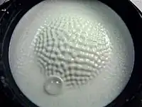 Cymatics (from Ancient Greek: κῦμα, romanized: kŷma, lit. 'wave') is a subset of modal vibrational phenomena. The term was coined by Swiss physician Hans Jenny (1904–1972). Typically the surface of a plate, diaphragm, or membrane is vibrated, and regions of maximum and minimum displacement are made visible in a thin coating of particles, paste, or liquid.[1] Different patterns emerge in the excitatory medium depending on the geometry of the plate and the driving frequency.