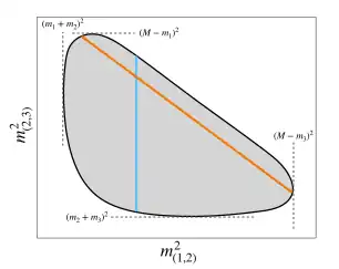 The Dalitz plot is a two-dimensional plot often used in particle physics to represent the relative frequency of various (kinematically distinct) manners in which the products of certain (otherwise similar) three-body decays may move apart.[2][3]