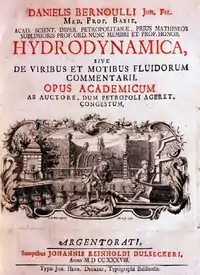 Daniel Bernoulli FRS (/bɜːrˈnuːli/ bur-NOO-lee, Swiss Standard German: [ˈdaːni̯eːl bɛrˈnʊli];[1] 8 February [O.S. 29 January] 1700 – 27 March 1782[2]) was a Swiss mathematician and physicist[2] and was one of the many prominent mathematicians in the Bernoulli family from Basel. He is particularly remembered for his applications of mathematics to mechanics, especially fluid mechanics, and for his pioneering work in probability and statistics.[3] His name is commemorated in the Bernoulli's principle, a particular example of the conservation of energy, which describes the mathematics of the mechanism underlying the operation of two important technologies of the 20th century: the carburetor and the aeroplane wing.[4][5]
