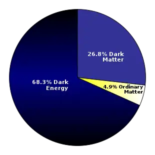 Estimated division of total energy in the universe into matter, dark matter and dark energy based on five years of WMAP data.[34]