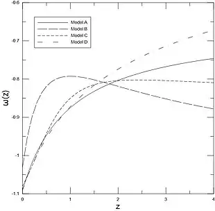 The equation of state of Dark Energy for 4 common models by Redshift.[44]