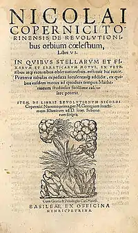De revolutionibus orbium coelestium (English translation: On the Revolutions of the Heavenly Spheres) is the seminal work on the heliocentric theory of the astronomer Nicolaus Copernicus (1473–1543) of the Polish Renaissance. The book, first printed in 1543 in Nuremberg, Holy Roman Empire, offered an alternative model of the universe to Ptolemy's geocentric system, which had been widely accepted since ancient times.