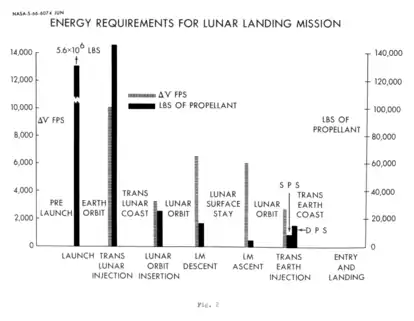 - "Delta-V Calculator". Archived from the original on March 12, 2000. Gives figures of 8.6 from Earth's surface to LEO, 4.1 and 3.8 for LEO to lunar orbit (or L5) and GEO resp., 0.7 for L5 to lunar orbit, and 2.2 for lunar orbit to lunar surface. Figures come from Chapter 2 of Space Settlements: A Design Study on the NASA website.