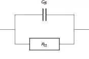 An electrode electrolyte interface behaves like a capacitance called electrochemical double-layer capacitance . The equivalent circuit for the redox reaction in Fig. 2 includes the double-layer capacitance as well as the charge transfer resistance . Another analog circuit commonly used to model the electrochemical double-layer is called a constant phase element.