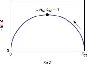 Nyquist diagram of the impedance of the circuit shown in Fig. 3 is a semicircle with a diameter and an angular frequency at the apex equal to (Fig. 3). Other representations, Bode plots, or Black plans can be used.[9]