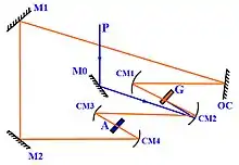 The first narrow linewidth dye laser, introduced by Hänsch, used a Galilean telescope as beam expander to illuminate the diffraction grating.[15] Next were the grazing-incidence grating designs[16][17] and the multiple-prism grating configurations.[18][19] The various resonators and oscillator designs developed for dye lasers have been successfully adapted to other laser types such as the diode laser.[20] The physics of narrow-linewidth multiple-prism grating lasers was explained by Duarte and Piper.[21]