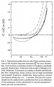 - J.J. Aubert; et al. (1983). "The ratio of the nucleon structure functions F2N for iron and deuterium". Phys. Lett. B. 123B (3–4): 275–278. Bibcode:1983PhLB..123..275A. doi:10.1016/0370-2693(83)90437-9.