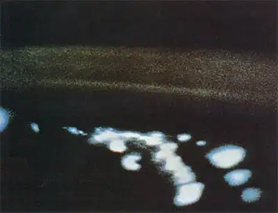 Ney's studies of the corona piqued his curiosity about other sources of dim light within the Solar System. Consequently, Ney and Huch developed reliable cameras whose low F-number enhanced their ability to record dim light, but sacrificed picture sharpness. This compromise proved to be appropriate for the dim and diffuse zodiacal light and airglow. On May 15, 1963, aboard Faith 7, one of Ney's cameras[57] was operated in space by Mercury astronaut Gordon Cooper. According to Ney's student John E. Naugle, NASA's Associate Administrator for Space Science and Applications, one of its images was: ".... the first photograph of the night airglow taken from above."[58] NASA designated Ney's experiment as "S-1", which means that it was the first scientific experiment conducted on a crewed space flight.[59] Later, aboard Geminis, 5, 9, 10, and 11, astronauts photographed the Zodiacal Light and the gegenschein,[60] which had been obscured in the Mercury missions by nightglow.[61]
