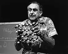 Teller made contributions to Thomas–Fermi theory, the precursor of density functional theory, a standard modern tool in the quantum mechanical treatment of complex molecules. In 1953, with Nicholas Metropolis, Arianna Rosenbluth, Marshall Rosenbluth, and Augusta Teller, Teller co-authored a paper that is a standard starting point for the applications of the Monte Carlo method to statistical mechanics and the Markov chain Monte Carlo literature in Bayesian statistics.[2] Teller was an early member of the Manhattan Project, which developed the first atomic bomb. He made a serious push to develop the first fusion-based weapons, but ultimately fusion bombs only appeared after World War II. He co-founded the Lawrence Livermore National Laboratory and was its director or associate director. After his controversial negative testimony in the Oppenheimer security clearance hearing of his former Los Alamos Laboratory superior, J. Robert Oppenheimer, the scientific community ostracized Teller.