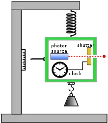 - Hnizdo, V. (2002). "On Bohr's response to the clock-in-the-box thought experiment of Einstein". Eur. J. Phys. 23 (4): L9–L13. arXiv:quant-ph/0107028. Bibcode:2001quant.ph..7028H. doi:10.1088/0143-0807/23/4/101. S2CID 2262257.