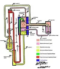 The Einstein–Szilard or Einstein refrigerator is an absorption refrigerator which has no moving parts, operates at constant pressure, and requires only a heat source to operate. It was jointly invented in 1926 by Albert Einstein and his former student Leó Szilárd, who patented it in the U.S. on November 11, 1930 (U.S. patent 1,781,541). The three working fluids in this design are water, ammonia, and butane.[1] The Einstein refrigerator is a development of the original three-fluid patent by the Swedish inventors Baltzar von Platen and Carl Munters.