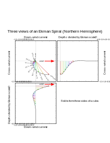 - Ekman spiral – Velocity profile of wind driven current with depth