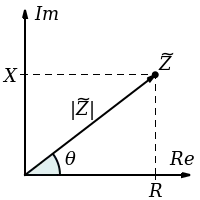 The impedance of a two-terminal circuit element is represented as a complex quantity . The polar form conveniently captures both magnitude and phase characteristics as