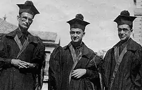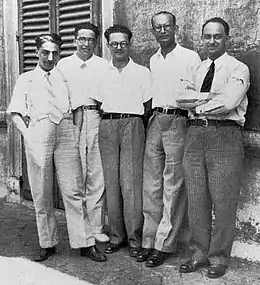 Professorships in Italy were granted by competition (concorso) for a vacant chair, the applicants being rated on their publications by a committee of professors. Fermi applied for a chair of mathematical physics at the University of Cagliari on Sardinia, but was narrowly passed over in favour of Giovanni Giorgi.[32] In 1926, at the age of 24, he applied for a professorship at the Sapienza University of Rome. This was a new chair, one of the first three in theoretical physics in Italy, that had been created by the Minister of Education at the urging of professor Orso Mario Corbino, who was the university's professor of experimental physics, the director of the Institute of Physics, and a member of Benito Mussolini's cabinet. Corbino, who also chaired the selection committee, hoped that the new chair would raise the standard and reputation of physics in Italy.[33] The committee chose Fermi ahead of Enrico Persico and Aldo Pontremoli,[34] and Corbino helped Fermi recruit his team, which was soon joined by notable students such as Edoardo Amaldi, Bruno Pontecorvo, Ettore Majorana and Emilio Segrè, and by Franco Rasetti, whom Fermi had appointed as his assistant.[35] They soon nicknamed the "Via Panisperna boys" after the street where the Institute of Physics was located.[36]