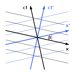 In 1948 and in subsequent papers, Loedel independently rediscovered such diagrams.[A 2][A 3] They were again rediscovered in 1955 by Henri Amar,[5] who subsequently wrote in 1957 in American Journal of Physics: "I regret my unfamiliarity with South American literature and wish to acknowledge the priority of Professor Loedel's work", along with a note by Loedel Palumbo citing his publications on the geometrical representation of Lorentz transformations.[6] Those diagrams are therefore called "Loedel diagrams", and have been cited by some textbook authors on the subject.[7][8]