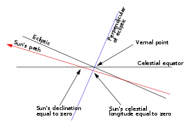 - in the ecliptic coordinate system, the vernal point is the origin of the ecliptic longitude;