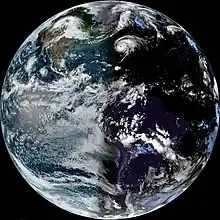 For the same reason, this is also the time when the Sun rises for an observer at one of Earth's rotational poles and sets at the other. For a brief period lasting approximately four days, both North and South Poles are in daylight.[lower-alpha 3] For example, in 2021 sunrise on the North Pole is 18 March 07:09 UTC, and sunset on the South Pole is 22 March 13:08 UTC. Also in 2021, sunrise on the South Pole is 20 September 16:08 UTC, and sunset on the North Pole is 24 September 22:30 UTC.[13][14]