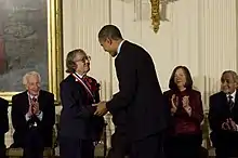In 2009, Conwell received the prestigious National Medal of Science from President Barack Obama, for "her broad contributions to understanding electron and hole transport in semiconducting materials, which helped to enable commercial applications of semiconductor and organic electronic devices, and for extending her analysis to studying the electronic properties of DNA."[14][12] She was nominated by Mildred Dresselhaus, a professor of physics and electrical engineering at MIT and a National Medals of Science winner.[15]