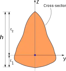 The curve describes the deflection of the beam in the direction at some position (recall that the beam is modeled as a one-dimensional object). is a distributed load, in other words a force per unit length (analogous to pressure being a force per area); it may be a function of , , or other variables. is the elastic modulus and is the second moment of area of the beam's cross section. must be calculated with respect to the axis which is perpendicular to the applied loading.[N 1] Explicitly, for a beam whose axis is oriented along with a loading along , the beam's cross section is in the plane, and the relevant second moment of area is