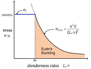 - The column fails only by buckling. This is true if the compressive stress in the column does not exceed the yield strength (see figure 1): where: