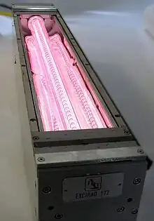 An excimer lamp (or excilamp) is a source of ultraviolet light based on spontaneous emission of excimer (exciplex) molecules.[1][2][3]