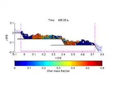 ![]() Progress of pyrolysis of straw blades on a forward acting grate, on which straw is converted into charred material |