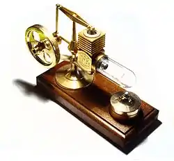 An external combustion engine (EC engine) is a reciprocating heat engine where a working fluid, contained internally, is heated by combustion in an external source, through the engine wall or a heat exchanger. The fluid then, by expanding and acting on the mechanism of the engine, produces motion and usable work.[1] The fluid is then dumped (open cycle), or cooled, compressed and reused (closed cycle). In these types of engines, the combustion is primarily used as a heat source, and the engine can work equally well with other types of heat sources.