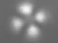 An extinction cross photographed with a CCD camera using a green laser beam and a polarizer