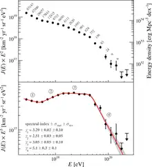 - Aab, A.; Abreu, P.; Aglietta, M.; Albury, J. M.; Allekotte, I.; Almela, A.; Alvarez Castillo, J.; Alvarez-Muñiz, J.; Alves Batista, R.; Anastasi, G. A.; Anchordoqui, L. (2020-09-16). "Measurement of the cosmic-ray energy spectrum above 2.5 × 10 18 eV using the Pierre Auger Observatory". Physical Review D. 102 (6): 062005. arXiv:2008.06486. Bibcode:2020PhRvD.102f2005A. doi:10.1103/PhysRevD.102.062005. ISSN 2470-0010.