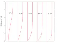 The case corresponds to the Blasius boundary layer solution. When , the problem reduces to the Hiemenz flow. Here, m < 0 corresponds to an adverse pressure gradient (often resulting in boundary layer separation) while m > 0 represents a favorable pressure gradient. In 1937 Douglas Hartree showed that physical solutions to the Falkner–Skan equation exist only in the range . For more negative values of m, that is, for stronger adverse pressure gradients, all solutions satisfying the boundary conditions at η = 0 have the property that f(η) > 1 for a range of values of η. This is physically unacceptable because it implies that the velocity in the boundary layer is greater than in the main flow.[8] Further details may be found in Wilcox (2007).