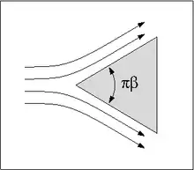 In fluid dynamics, the Falkner–Skan boundary layer (named after V. M. Falkner and Sylvia W. Skan[1]) describes the steady two-dimensional laminar boundary layer that forms on a wedge, i.e. flows in which the plate is not parallel to the flow. It is also representative of flow on a flat plate with an imposed pressure gradient along the plate length, a situation often encountered in wind tunnel flow. It is a generalization of the flat plate Blasius boundary layer in which the pressure gradient along the plate is zero.