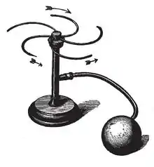 The first documented treatment of the problem is in chapter III, section III of Ernst Mach's textbook The Science of Mechanics, first published in 1883.[1] There, Mach reported that the device showed "no distinct rotation."[2] In the early 1940s (and apparently without awareness of Mach's earlier discussion), the problem began to circulate among members of the physics department at Princeton University, generating a lively debate. Richard Feynman, at the time a young graduate student at Princeton, built a makeshift experiment within the facilities of the university's cyclotron laboratory. The experiment ended with the explosion of the glass carboy that he was using as part of his setup.