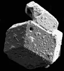 After crystallization, often some solidified flux remains on the surface or inside the desired crystal. This flux may cause defects in the crystal due to the different thermal expansivities of the flux and crystal.[4] A solvent (typically an acid or a base) can dissolve the flux, but it's difficult to find a solvent that doesn't also dissolve the crystal. The flux can be removed mechanically using a blade or drill. If the crystal and flux have significantly different boiling points, the flux may be removed with evaporation. Flux can also be removed through recrystallization through use of a seed in the liquid phase, leaving the flux behind as the crystals accumulate.