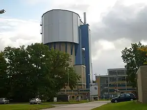The new scientific orientation led to a name change and "Forschungszentrum Jülich GmbH" (FZJ) came into being in 1990. Forschungszentrum Jülich is a founding member of the then Association of National Research Centres (AGF, 1970), which became the Helmholtz Association of German Research Centres in 1995.[17] In 2004, the Ernst Ruska-Centre for Electron Microscopy was founded. It is equipped with transmission electron microscopes. Soil and environmental research were interlinked with climate research. In 2001, the SAPHIR atmospheric simulation chamber was inaugurated, followed by the PhyTec experimental facility for plants in 2014. Collaboration with RWTH Aachen University was consolidated in 2007 by establishing the Jülich Aachen Research Alliance (JARA).[18] In 2011, Forschungszentrum Jülich, in partnership with the universities in Aachen, Bonn, Cologne, and Düsseldorf, founded the Bioeconomy Science Center (BioSc) as a scientific centre of excellence for sustainable bioeconomy.[19] FZJ also works closely with the universities in Bonn, Cologne, and Aachen within the Geoverbund ABC/J.[20] In 2011, the ESS Competence Centre was established at Forschungszentrum Jülich. It coordinates the German contributions to the European Spallation Source (ESS) in Lund, Sweden.[21]