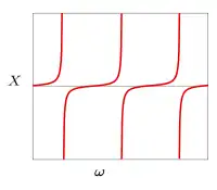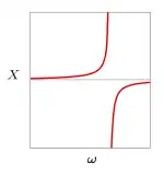 ![]() Plot of the reactance of a parallel LC circuit against frequency |