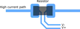 It is common to provide 4-wire connections to current-sensing shunt resistors of low resistance operating at high current.