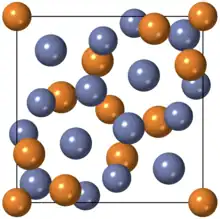 The μ phase has an ideal A6B7 stoichiometry, with its prototype W6Fe7, containing rhombohedral cell with 13 atoms. While many other Frank-Kasper alloy types have been identified, more continue to be found. The alloy Nb10Ni9Al3 is the prototype for the M phase. It has orthorhombic space group with 52 atoms per unit cell. The alloy Cr9Mo21Ni20 is the prototype for the P-phase. It has a primitive orthorhombic cell with 56 atoms. The alloy Co5Cr2Mo3 is the prototype for the R-phase which belongs to the rhombohedral space group with 53 atoms per cell.[5][1]