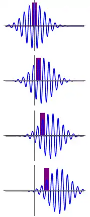 which agrees with the formula for the classical velocity of the particle. The group velocity is the (approximate) speed at which the whole wave packet propagates, while the phase velocity is the speed at which the individual peaks in the wave packet move.[3] The figure illustrates this phenomenon, with the individual peaks within the wave packet propagating at half the speed of the overall packet.
