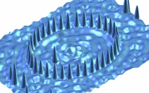 In the figure to the right, a 2-dimensional Friedel oscillations has been illustrated with an STM image of a clean surface. As the image is taken on a surface, the regions of low electron density leave the atomic nuclei ‘exposed’ which result in a net positive charge.
