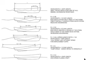 where u is the relative flow velocity between the sea and ship, g is in particular the acceleration due to gravity, and L is the length of the ship at the water line level, or Lwl in some notations. It is an important parameter with respect to the ship's drag, or resistance, especially in terms of wave making resistance.