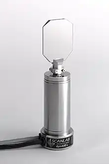 Mirror galvanometer systems are used as beam positioning or beam steering elements in laser scanning systems. For example, for material processing with high-power lasers, closed loop mirror galvanometer mechanisms are used with servo control systems. These are typically high power galvanometers and the newest galvanometers designed for beam steering applications can have frequency responses over 10 kHz with appropriate servo technology. Closed-loop mirror galvanometers are also used in similar ways in stereolithography, laser sintering, laser engraving, laser beam welding, laser TVs, laser displays and in imaging applications such as retinal scanning with Optical Coherence Tomography (OCT) and Scanning Laser Ophthalmoscopy (SLO). Almost all of these galvanometers are of the moving magnet type. The closed loop is obtained measuring the position of the rotating axis with an infrared emitter and 2 photodiodes. This feedback is an analog signal.