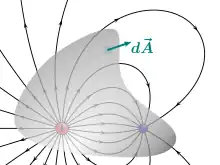 where E is the electric field, dA is a vector representing an infinitesimal element of area of the surface,[note 2] and · represents the dot product of two vectors.