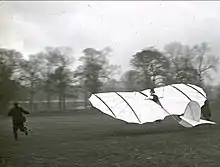 FitzGerald, in common with others at the end of the nineteenth century, became obsessed with the desire to fly. His attempts in College Park, in Trinity College Dublin, in 1895 involved large numbers of students pulling tow-ropes attached to the Lilienthal glider, and attracted the attention of the people of Dublin, beyond the Nassau Street railings. FitzGerald took off his coat on these occasions, but retained his top hat, which was normal headgear for a Fellow at that time. The experiments were not crowned with success, and were eventually abandoned. The flying machine hung for many years in the Museum Building until an idle engineering student applied a match to the cord from which it was hanging. The flame travelled along the cord and consumed the glider before the helpless onlookers.[8]