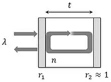 In optics, a Gires–Tournois etalon (also known as Gires–Tournois interferometer) is a transparent plate with two reflecting surfaces, one of which has very high reflectivity, ideally unity. Due to multiple-beam interference, light incident on a Gires–Tournois etalon is (almost) completely reflected, but has an effective phase shift that depends strongly on the wavelength of the light.