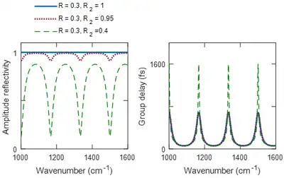 To show this effect, we assume is real and , where is the intensity reflectivity of the first surface. Define the effective phase shift through