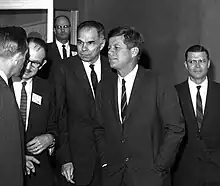 Seaborg enjoyed a close relationship with President Lyndon Johnson and influenced the administration to pursue the Nuclear Non-Proliferation Treaty.[40] Seaborg was called to the White House in the first week of the Nixon Administration in January 1969 to advise President Richard Nixon on his first diplomatic crisis involving the Soviets and nuclear testing. He clashed with Nixon presidential adviser John Ehrlichman over the treatment of a Jewish scientist, Zalman Shapiro, whom the Nixon administration suspected of leaking nuclear secrets to Israel.[41]