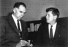 After appointment by President John F. Kennedy and confirmation by the United States Senate, Seaborg was chairman of the Atomic Energy Commission (AEC) from 1961 to 1971. His pending appointment by President-elect Kennedy was nearly derailed in late 1960 when members of the Kennedy transition team learned that Seaborg had been listed in a U.S. News & World Report article as a member of "Nixon's Idea Men". Seaborg said that as a lifetime Democrat he was baffled when the article appeared associating him with outgoing Vice President Richard Nixon, a Republican whom Seaborg considered a casual acquaintance.[36]