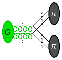 In particle physics, a glueball (also gluonium, gluon-ball) is a hypothetical composite particle.[1] It consists solely of gluon particles, without valence quarks. Such a state is possible because gluons carry color charge and experience the strong interaction between themselves. Glueballs are extremely difficult to identify in particle accelerators, because they mix with ordinary meson states.[2][3] In pure gauge theory, glueballs are the only states of the spectrum and some of them are stable.[4]