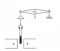 The Gouy balance measures the apparent change in the mass of the sample as it is repelled or attracted by the region of high magnetic field between the poles.[2] Some commercially available balances have a port at their base for this application. In use, a long, cylindrical sample to be tested is suspended from a balance, partially entering between the poles of a magnet. The sample can be in solid or liquid form, and is often placed in a cylindrical container such as a test tube. Solid compounds are generally ground into a fine powder to allow for uniformity within the sample.[3] The sample is suspended between the magnetic poles through an attached thread or string.[2] The experimental procedure requires two separate reading to be performed. An initial balance reading is performed on the sample of interest without a magnetic field (ma). A subsequent balance reading is taken with an applied magnetic field (mb). The difference between these two readings relates to the magnetic force on the sample (mb – ma).[2][4]